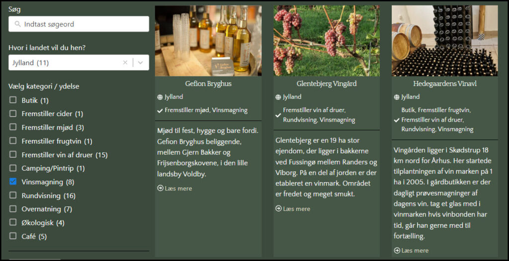 - Et overskueligt værktøj, som både danske og udenlandske turister kan bruge til at finde og besøge danske vinproducenter.